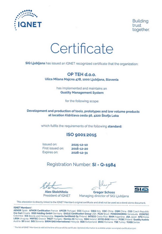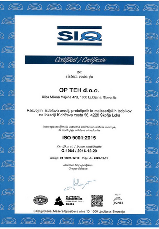 Company OPTEH d.o.o is certified in accordance with DIN EN ISO 9001: 2015.